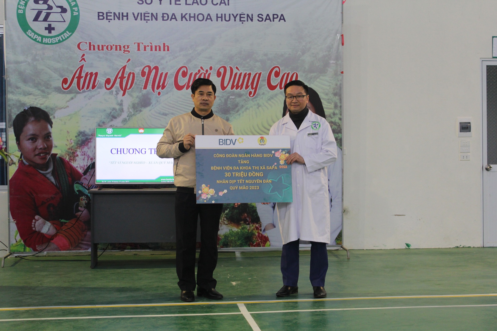 Tại buổi tặng quà Ngân hàng TMCP ĐT&PT Việt Nam (BIDV) Chi nhánh thị xã Sa Pa đã trao 60 xuất quà (mỗi xuất trị giá 500.000đồng) tới những bệnh nhân có hoàn cảnh khó khăn đang điều trị tại Bện viện đa khoa thị xã Sa Pa.